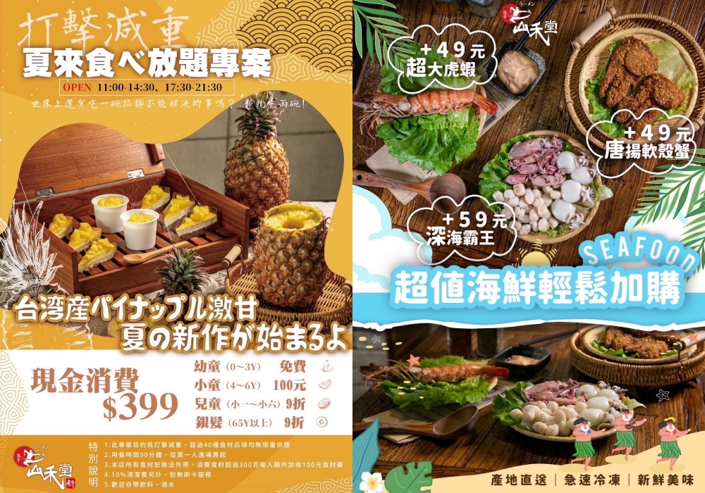 整體來說,這間「山禾堂拉麵」平日中午只要499元+10%就能吃到飽真的很超值!除了拉麵任你吃之外,菜單上所有的配料都可以無限加點,另外還有炸物桌邊服務,飲料及啤酒暢飲!芒果季期間還有新鮮愛文芒果及各式芒果甜點讓你無限吃!以這價位來說真的是無可挑剔了!就只怕你訂不到位而已啦😂