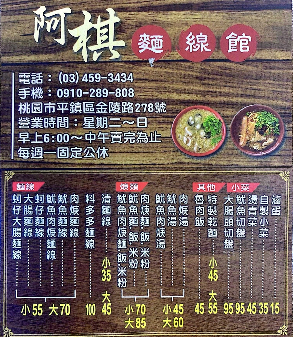▲這是「阿棋麵線館」的完整菜單,供參考(實際販售品項與價格,以店家現場公告為主)