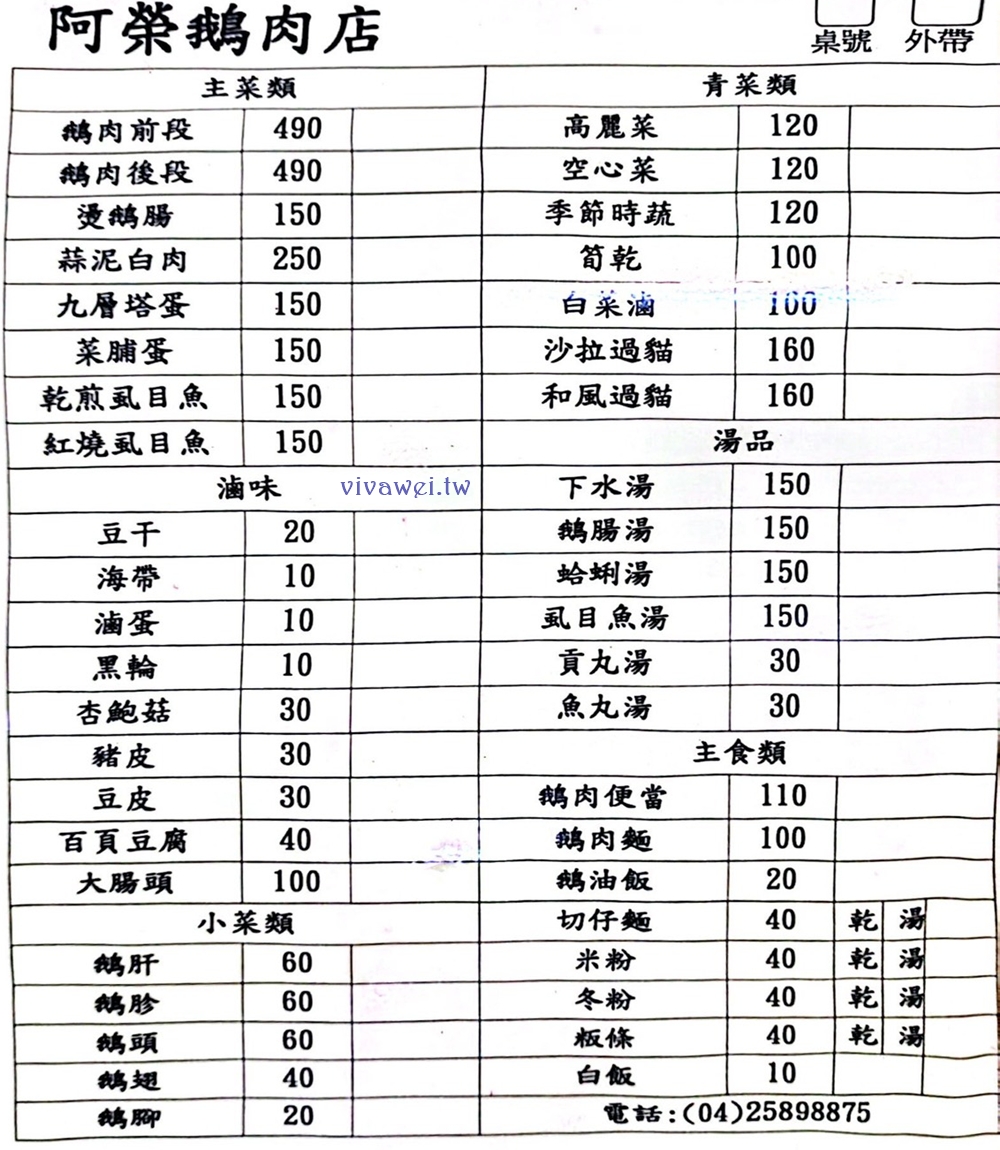 ▲這是「阿榮鵝肉店」2025年的最新菜單,供參考(實際販售品項與價格,以店家現場公告為主)!
