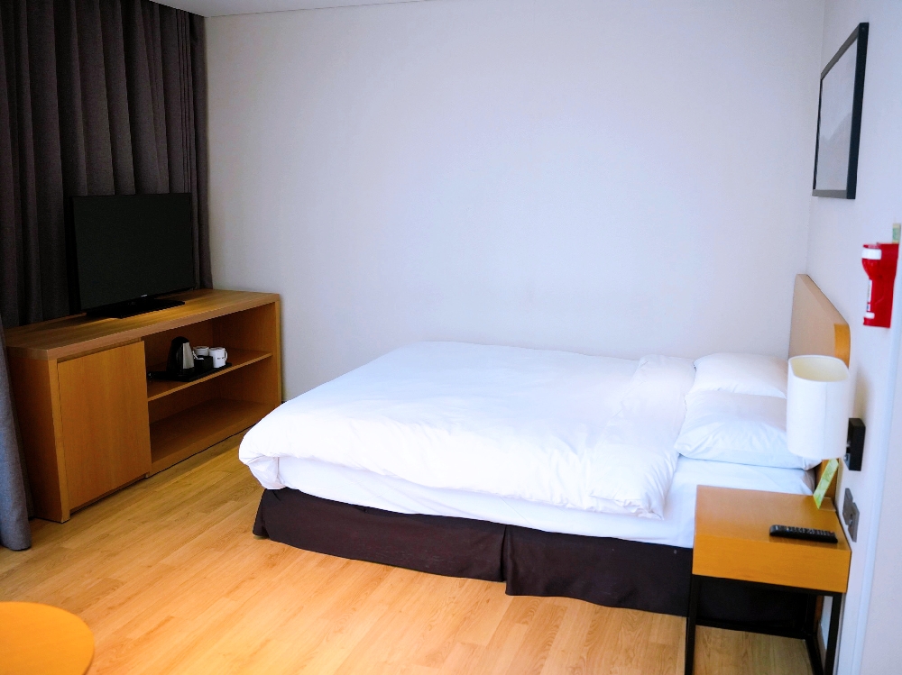 ▲我們這兩晚入住的是客房面積29平方公尺的「市景豪華雙人房 (Deluxe Double City View)」,會挑這個房型主要是因為他有浴缸,兩個平日晚上的費用為140,000韓幣!若是帶12歲以下的小童可以免費入住!