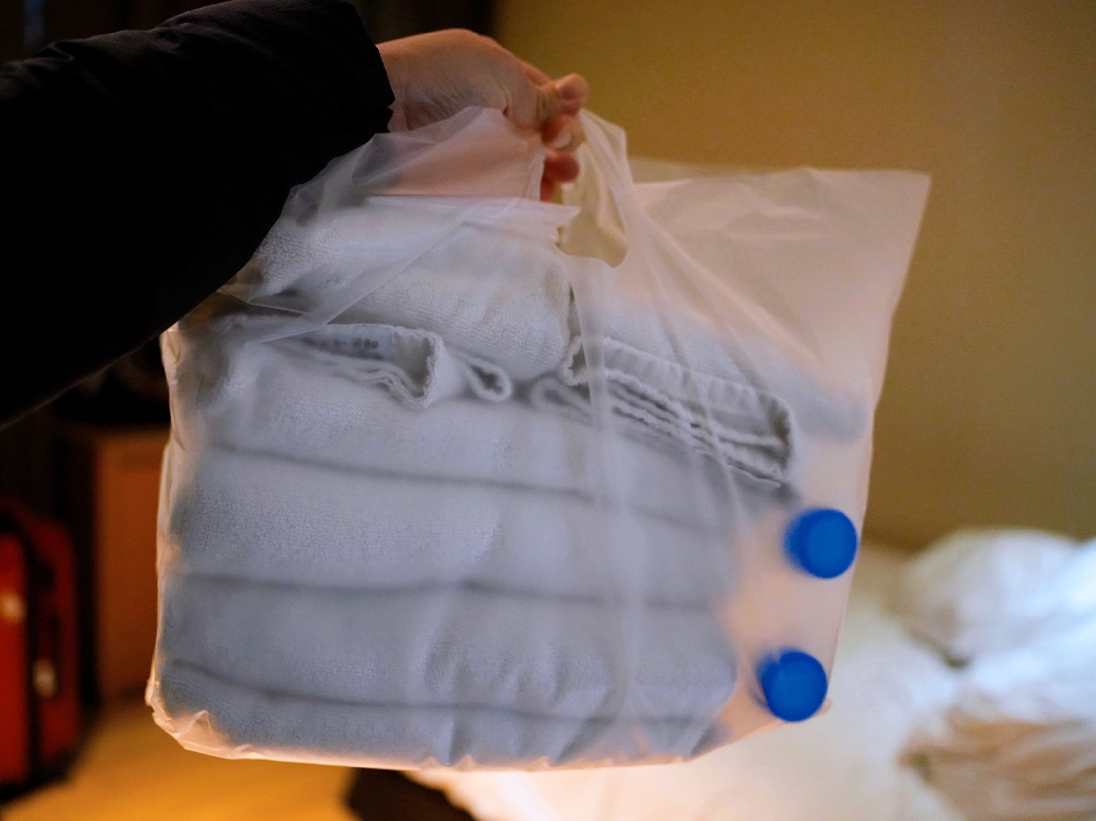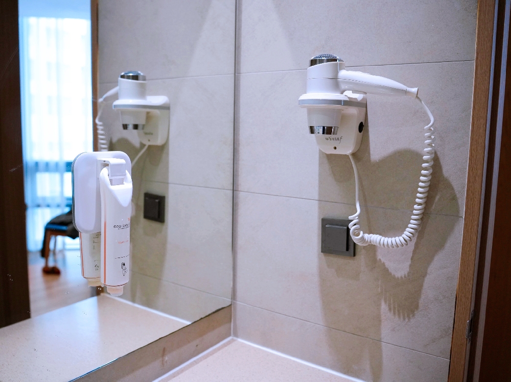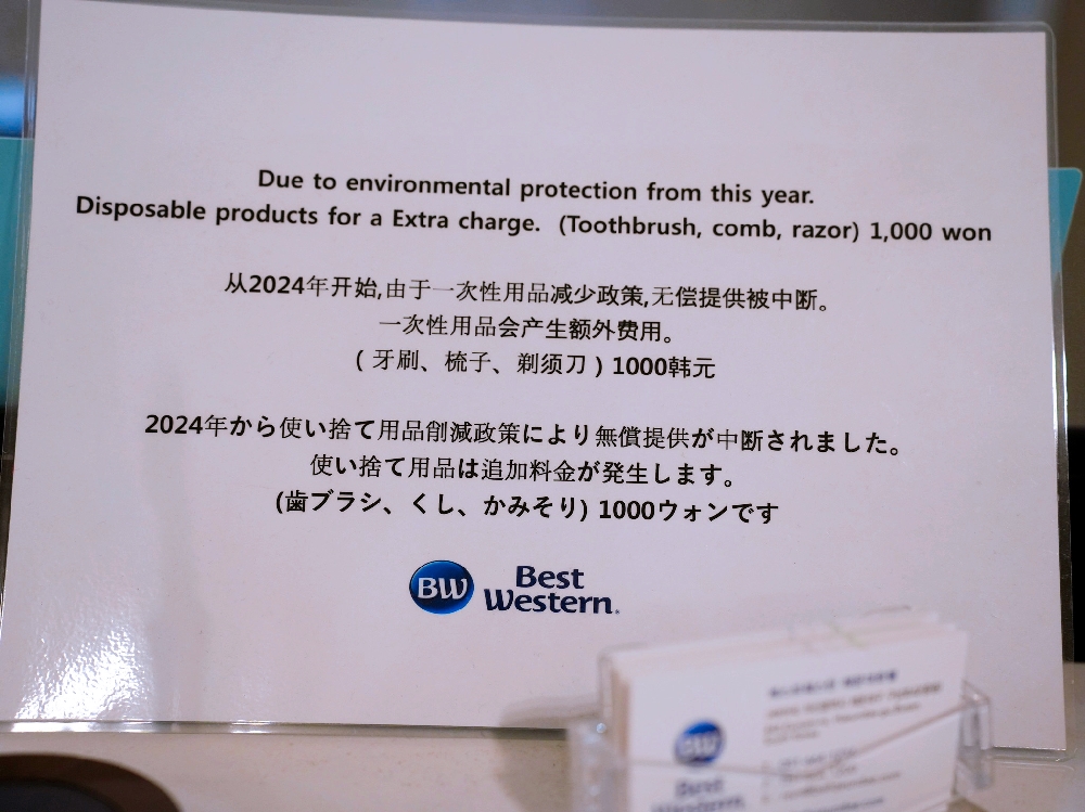 ▲飯店沒有提供一次性的備品,牙刷、梳子、刮鬍刀都要自行準備,不然需要額外跟飯店購買唷!因為我們連續住了兩個晚上,飯店沒有提供清潔服務,但會在門口放新的毛巾和礦泉水給我們!