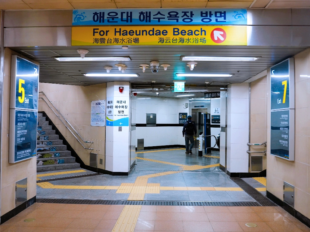 ▲如果是有帶大型行李要前往飯店的朋友,請走到海雲台站5號出口&7號出口這邊,在兩個出口的中間有電梯可以搭乘,搭上去以後一路都是平坦的路,拉行李箱還算蠻方便的!大約走個8-10分鐘即可到飯店!