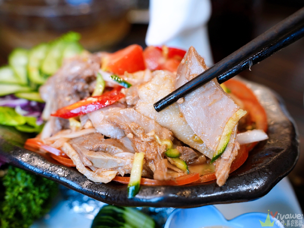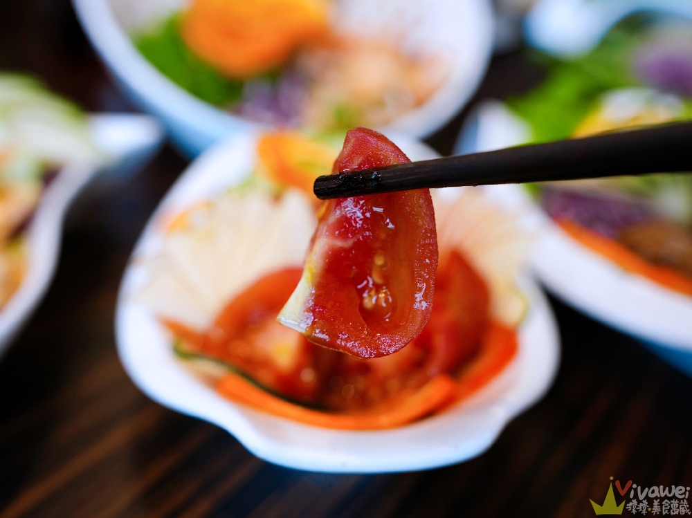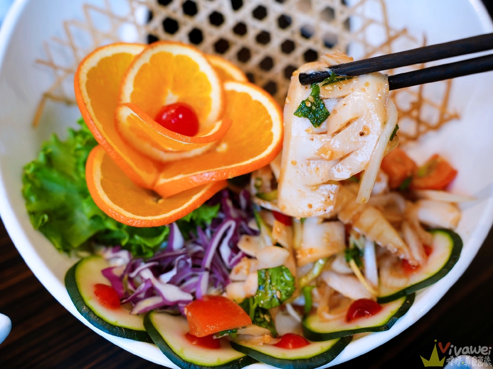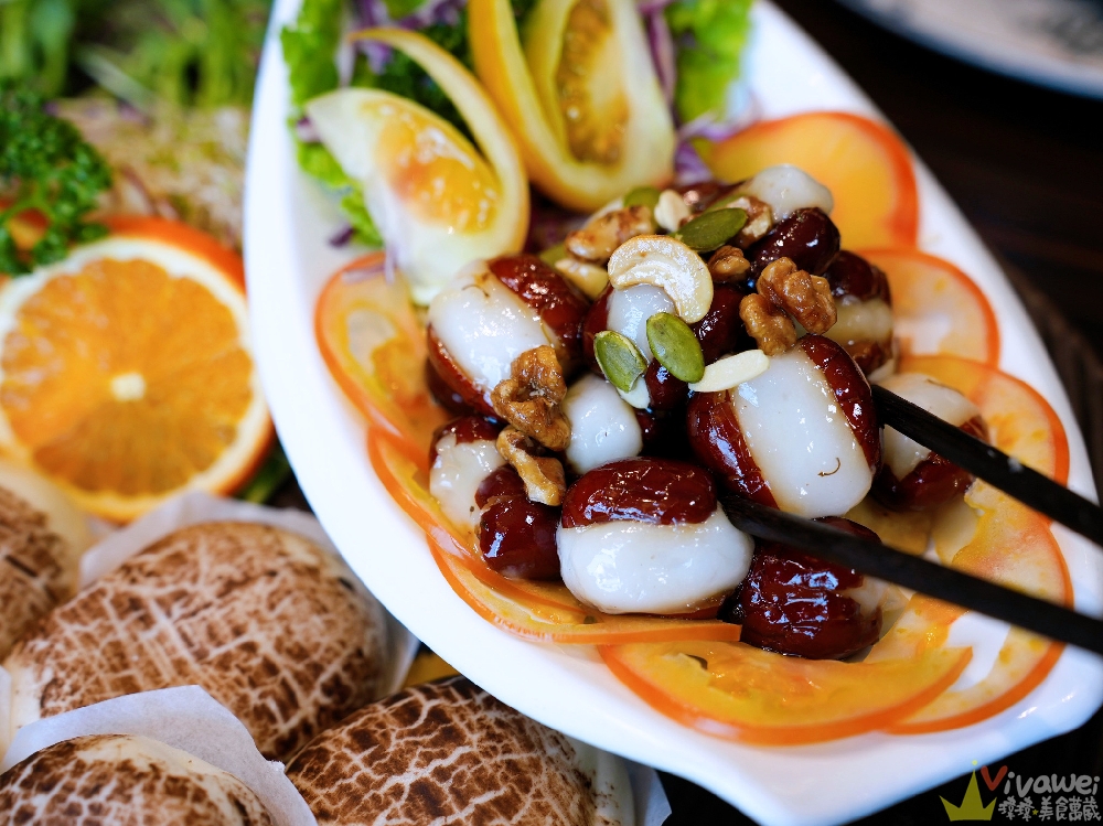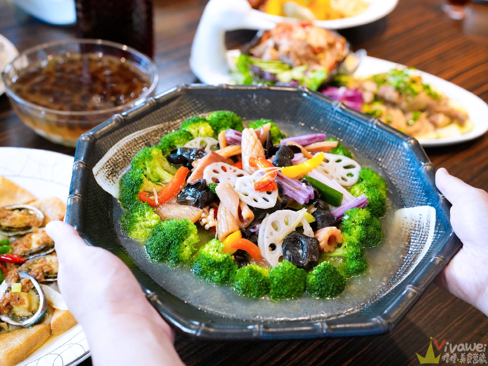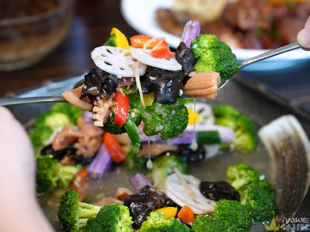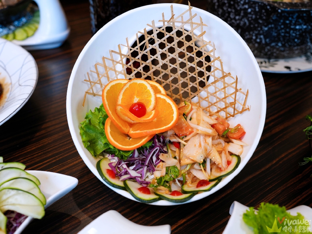 ▲彩虹季節美時蔬的配色也太美了吧!會先在外圍圍上一圈花椰菜.中間則擺放了魷魚、木耳、蓮藕、彩椒、山藥等食材,五彩繽紛的菜盤看上去就很誘人呢!