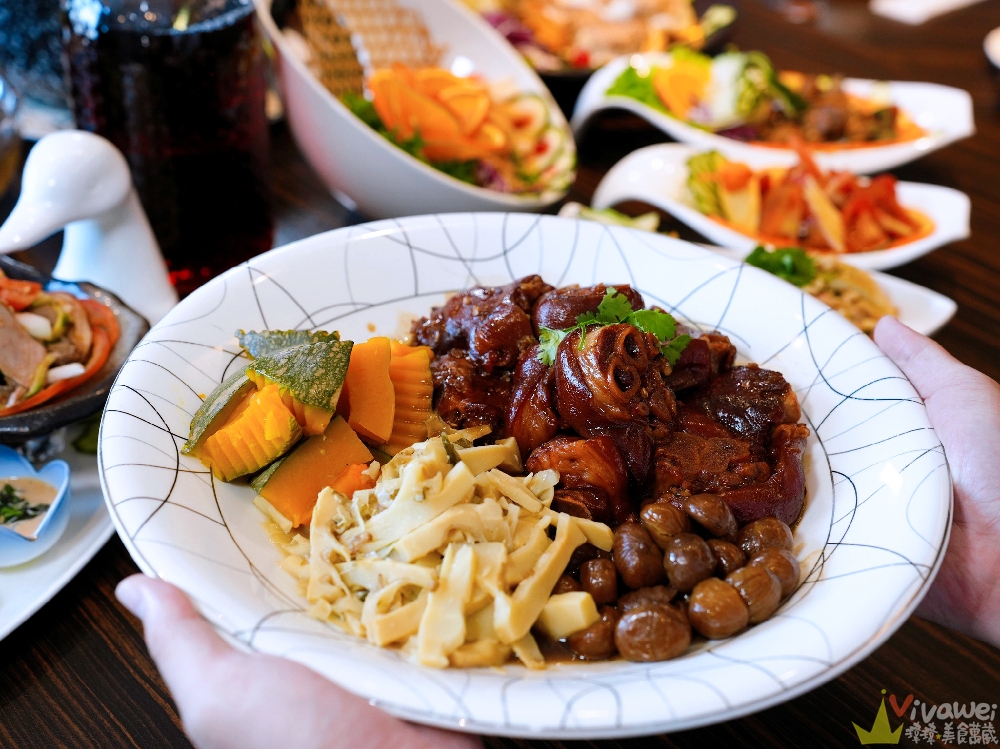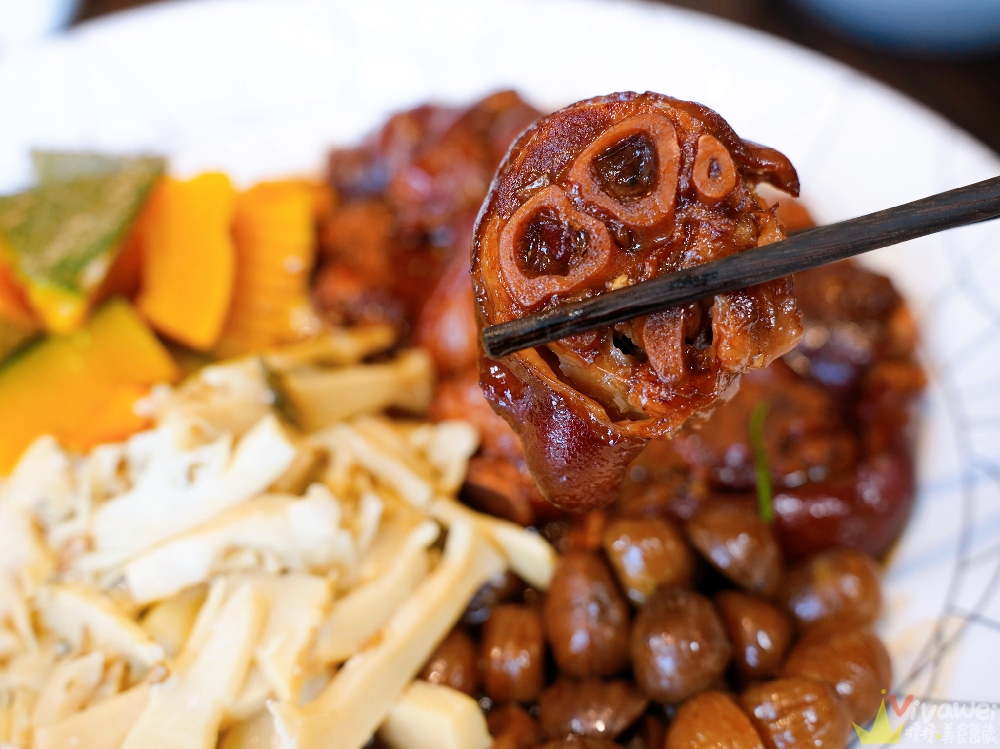 ▲南瓜燒豬腳選用了豬腳圈~搭配栗子南瓜、板栗、桂竹筍!這樣的組合不只吃得到傳統的客家味~裡面搭配的栗子和南瓜讓豬腳吃起來更豐富😍