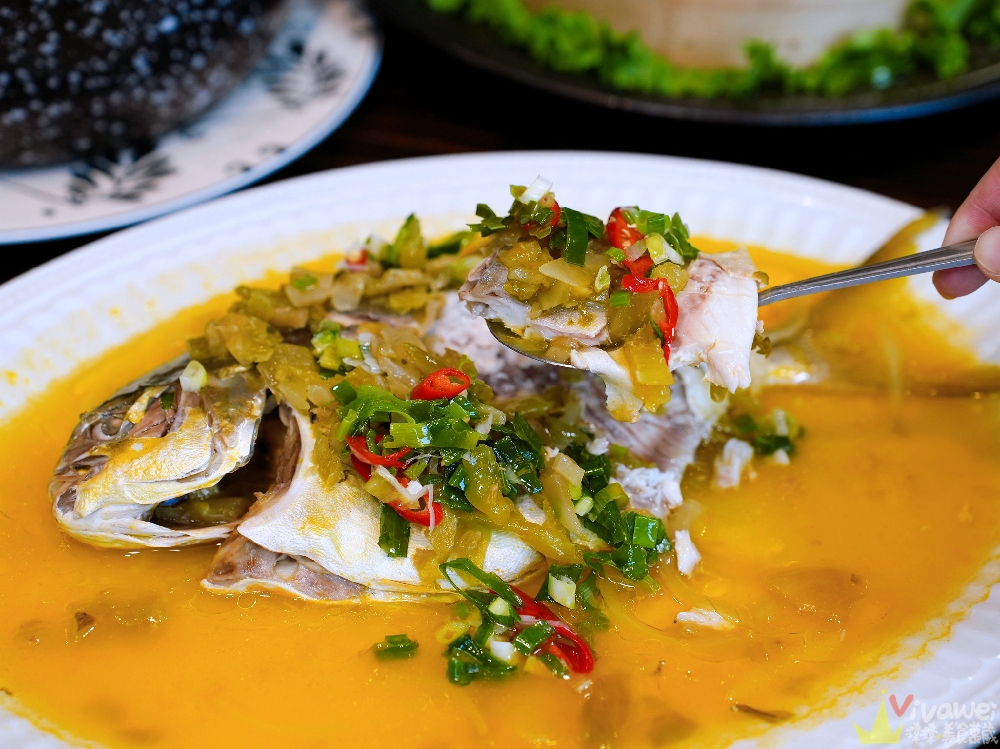 ▲金湯帶有微微的麻、辣和酸,酸則是酸菜天然的酸,讓人吃了還會有回甘的感覺!而這天選用的是白鯧魚,肉質口感很細緻!但因為他的魚刺比較細,在食用時請特別注意安全唷!