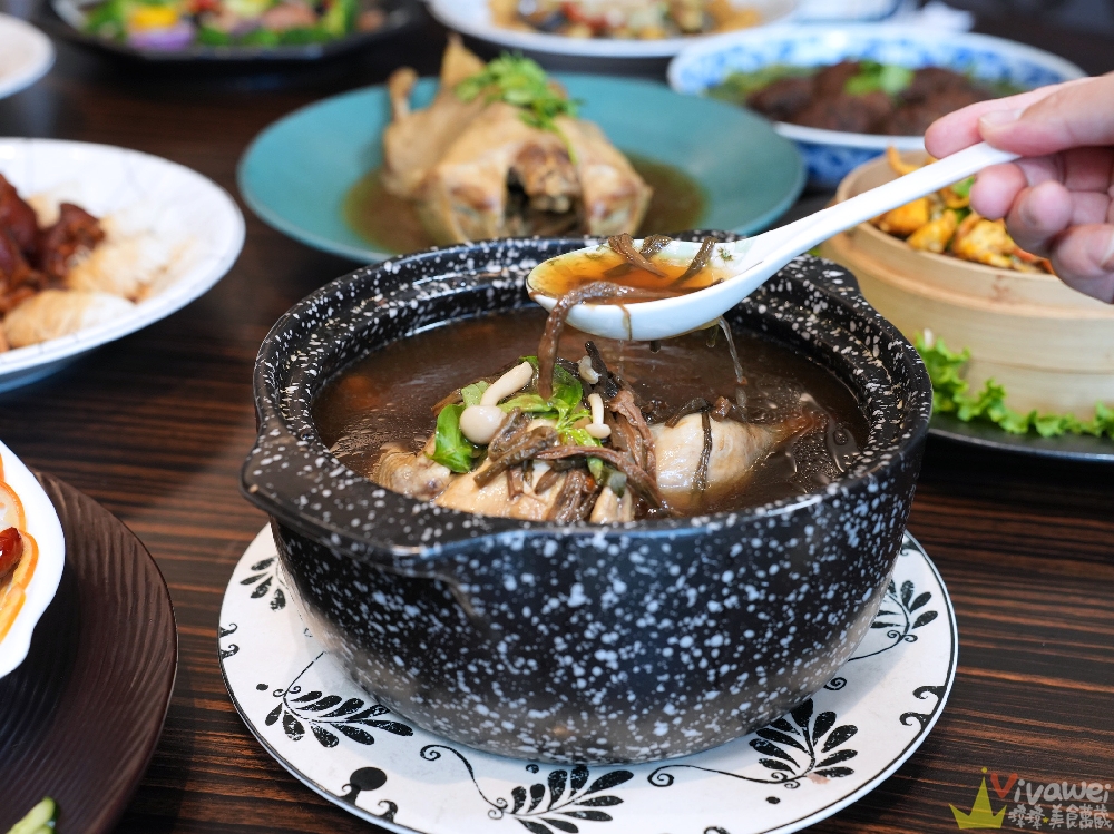 ▲整體來說,這間「范頭家客家餐館」身為苗栗人的我居然第一次吃實在太不應該!他們的客家菜很精緻,而且擺盤和口味都很創新,這天用餐下來特別喜歡一口蟹酥芋香糕、懷舊豆仔乾雞湯、客家梅菜獅子頭、胡椒封鴨、手作點心鴛鴦拼、客家甜湯、桂花烏梅汁、陳香奶茶!這邊的餐點有單點的客家小品、熱炒、湯品等,還有需要提前三天預約的功夫手路菜,以及4800元起的精緻合菜,無論人數多寡都很適合來用餐唷👌