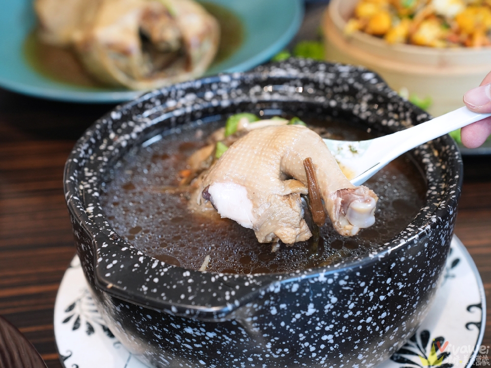 ▲這道湯肯定是客家菜的經典啊!客家人將長豆曬乾製成豆仔乾,店家會先將豆子經過慢火熬煮兩小時,熬完湯以後再與全雞、珠貝、蒜仁一同燉煮,讓湯頭的豆味喝起來更突出!而裡面的雞肉也燉到軟爛~只用湯匙輕輕撥開就能將骨肉分離~口感很嫩呢!