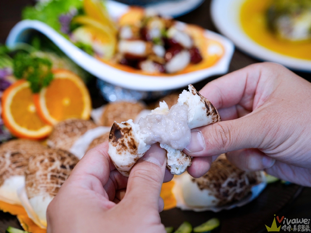 ▲先將蒜頭下鍋油炸,炸到微微金黃色以後再放進去蒸,這樣的香氣會比生蒜頭更有層次感!而一旁的三角豆腐很會吸湯汁,搭配著新鮮的鮑魚一起放入口中,這組合超完美的啦!