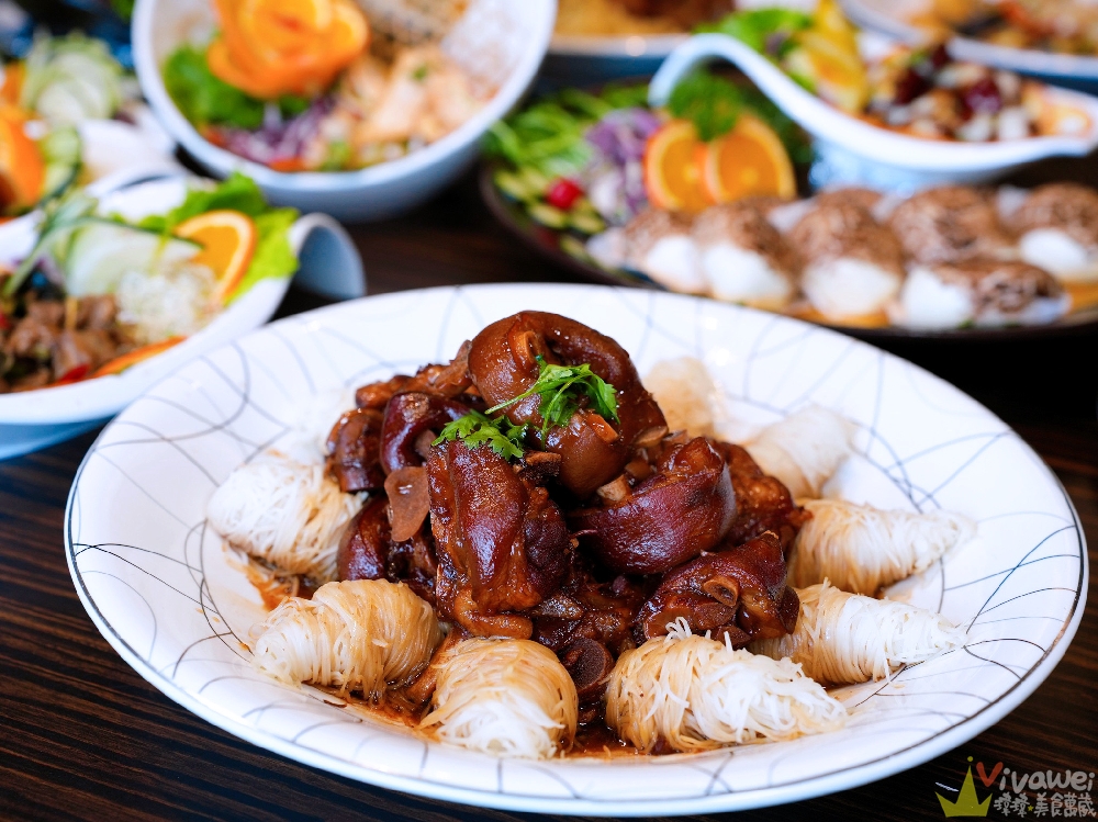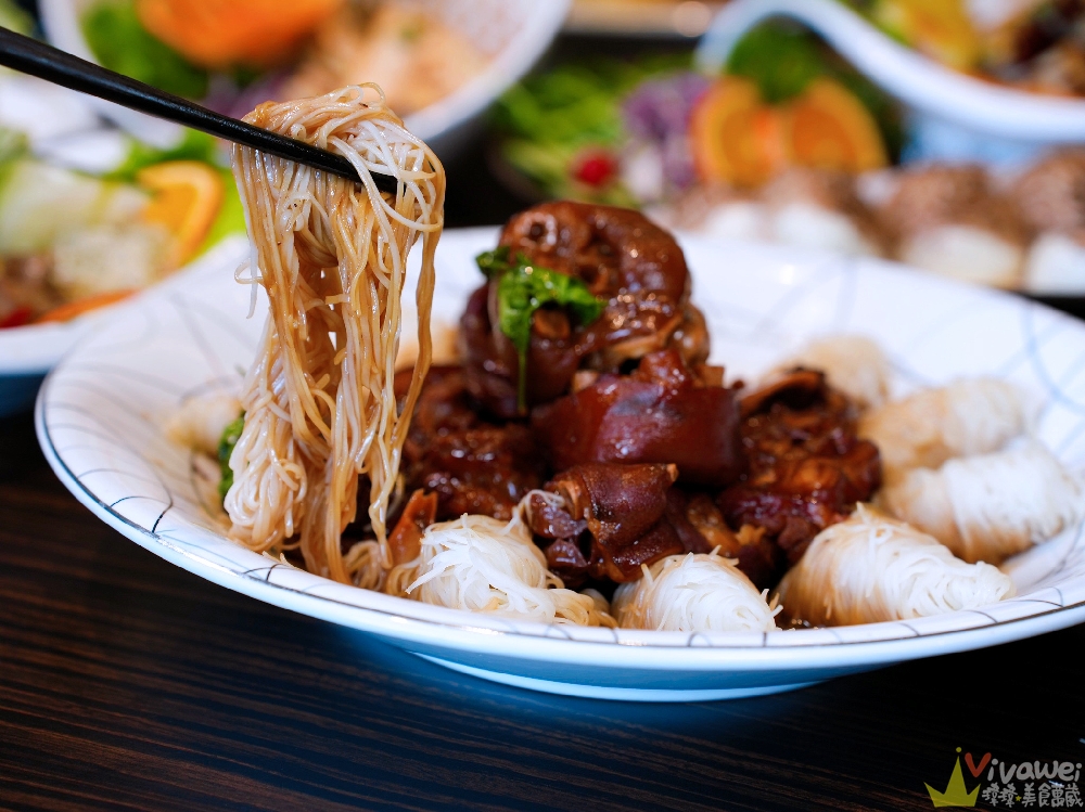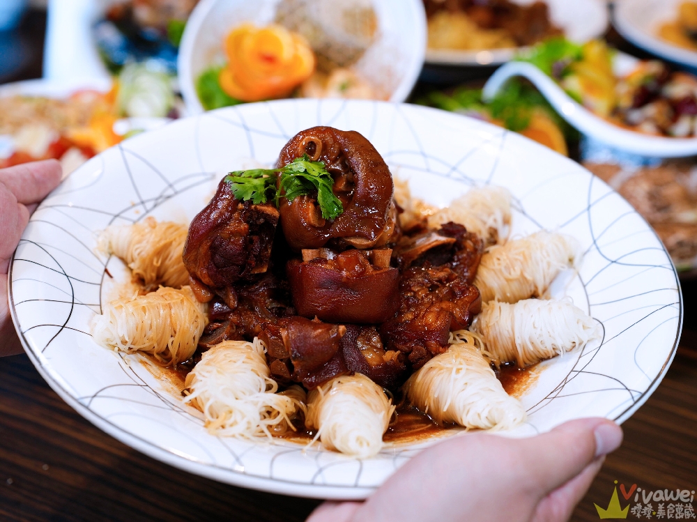 ▲這道紅燒豬腳圈是需要提前3天訂購的功夫菜!替長輩祝壽肯定要點這一盤豬腳麵線啊~店家嚴選最高規格的豬腳圈~使用天然紅麴米滷製5小時~豬腳圈的口感QQ的~膠質滿滿~而且滷到入味不死鹹~值得一吃🥰