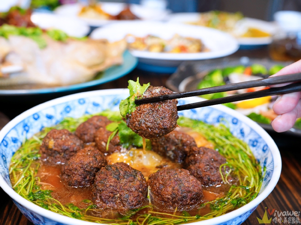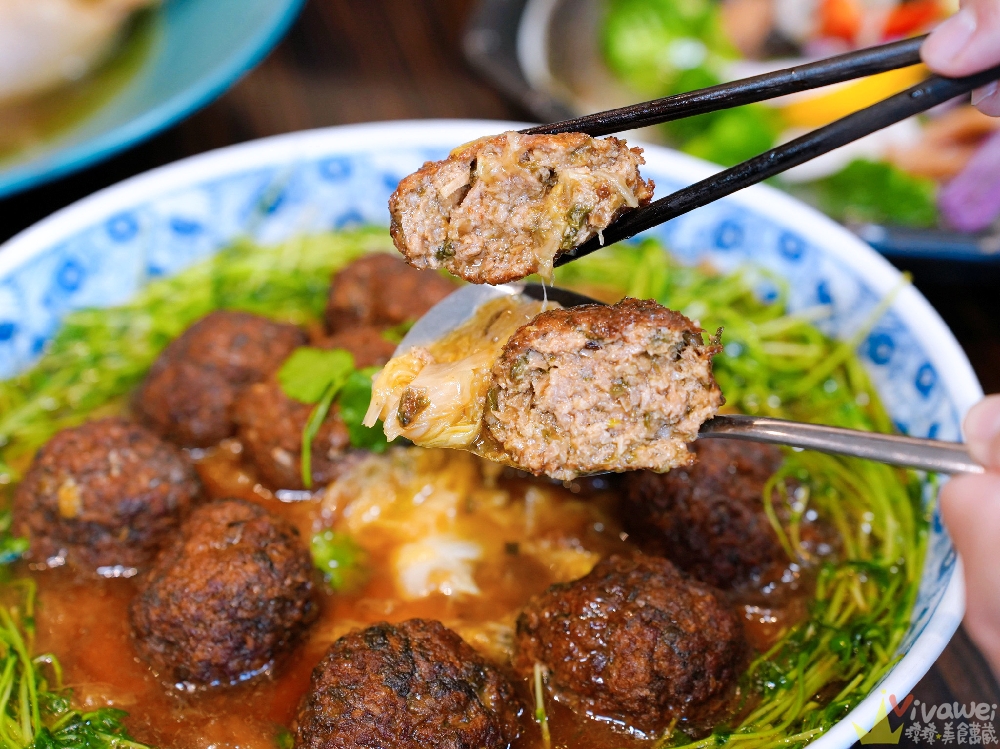 ▲獅子頭加上客家梅乾菜調味,吃起來有獨特的鹹香滋味,下面則是加了滿滿的白菜點綴,搭配著吃比較不膩口!