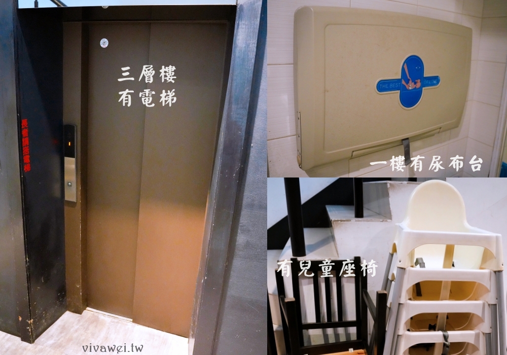 ▲店家有三層樓的用餐空間,而且店內設有電梯,帶小朋友或長輩前來也不用擔心!而且一樓的洗手間內設有尿布台,有有兒童座椅,是間親子友善的餐廳呢!很加分👍👍
