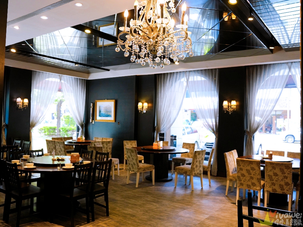 ▲「范頭家客家餐館」一樓的用餐區也太美了吧!有別於我對客家餐廳的認知,這裡居然出現了水晶吊燈,有夠夢幻的啦,裝潢也相當有質感!