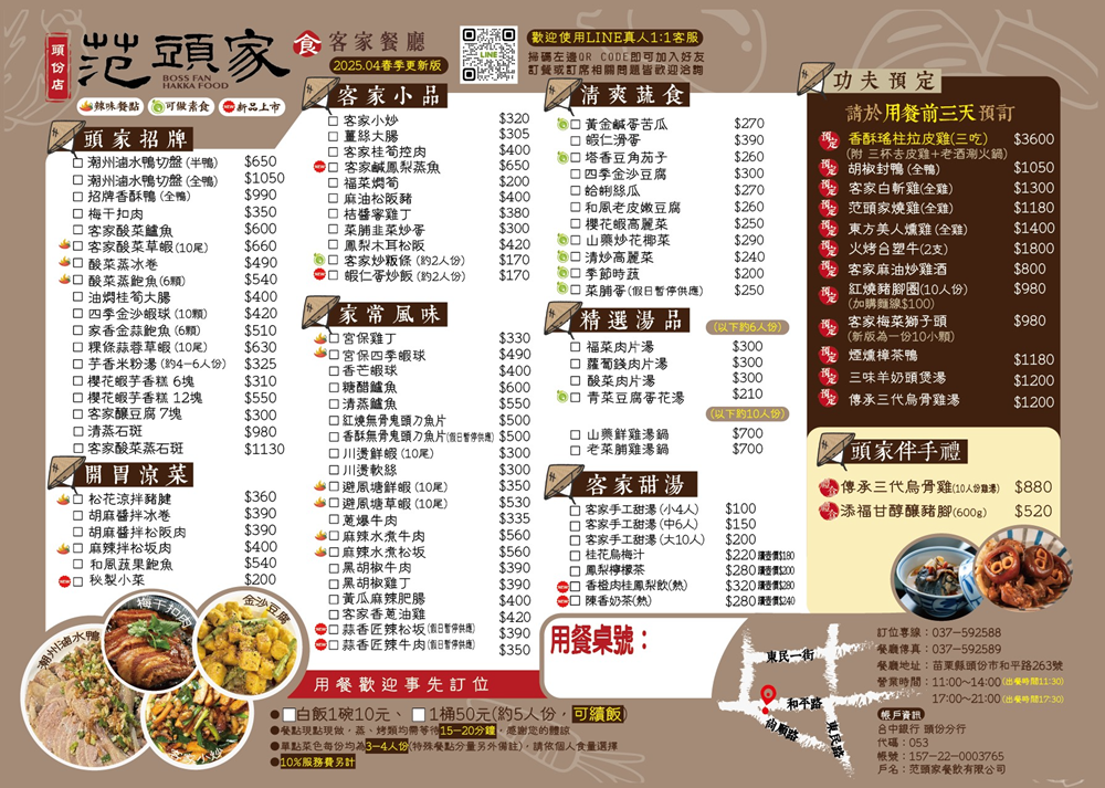 ▲這是「范頭家客家餐館」的單點品項&預約功夫菜的菜單,供參考(實際販售品項與價格,以店家現場公告為主)