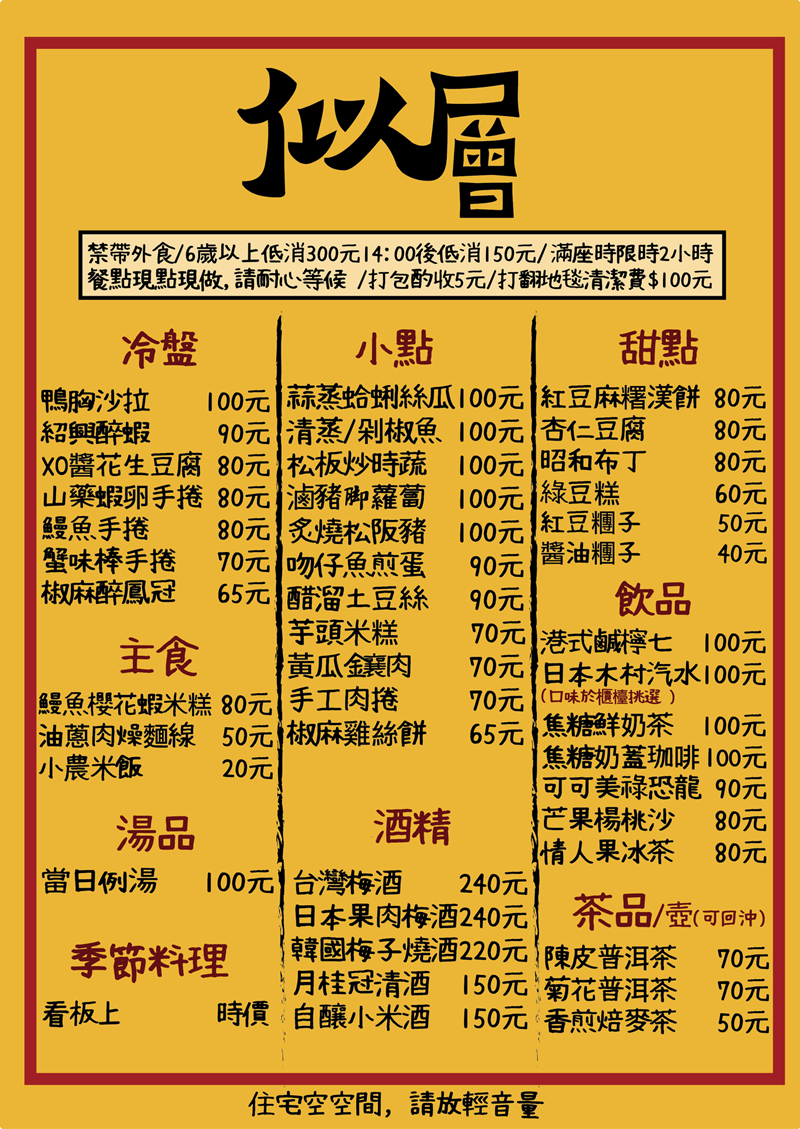 ▲這是「似層.4F」的完整菜單,供參考!6歲以上低消300元、14:00以後低消150元、客滿時限時2小時!(這是店家2023年2月上傳的最新菜單,實際販售品項與價格,以店家現場公告為主)