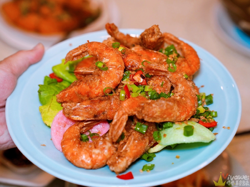 ▲椒鹽蝦是人人都愛的一道料理,炸過的椒鹽蝦口感酥脆,完全不油膩,還可以帶殼一起吃~一旁有蒜頭、辣椒、蔥花等辛香料搭配,讓人吮指回味。