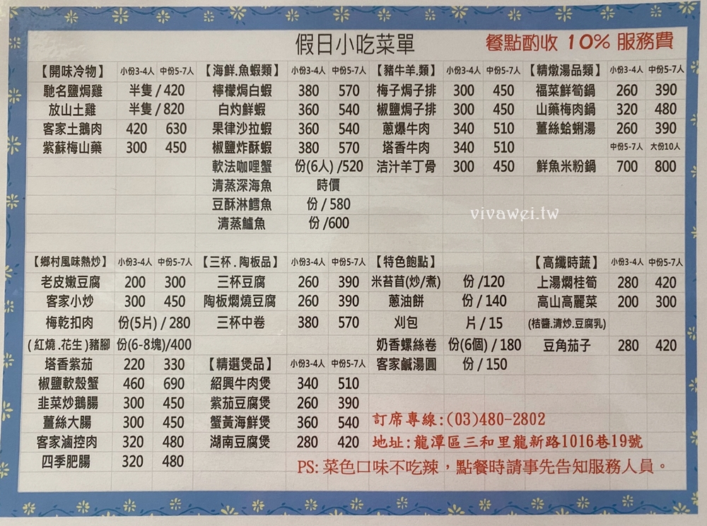 ▲這是店家的完整菜單,供參考!小份適合3-4人、中份適合5-7人。PS:店內用餐需要加收10%服務費!(餐點價格皆有時效性,實際菜單價格以店家現場公告為主)