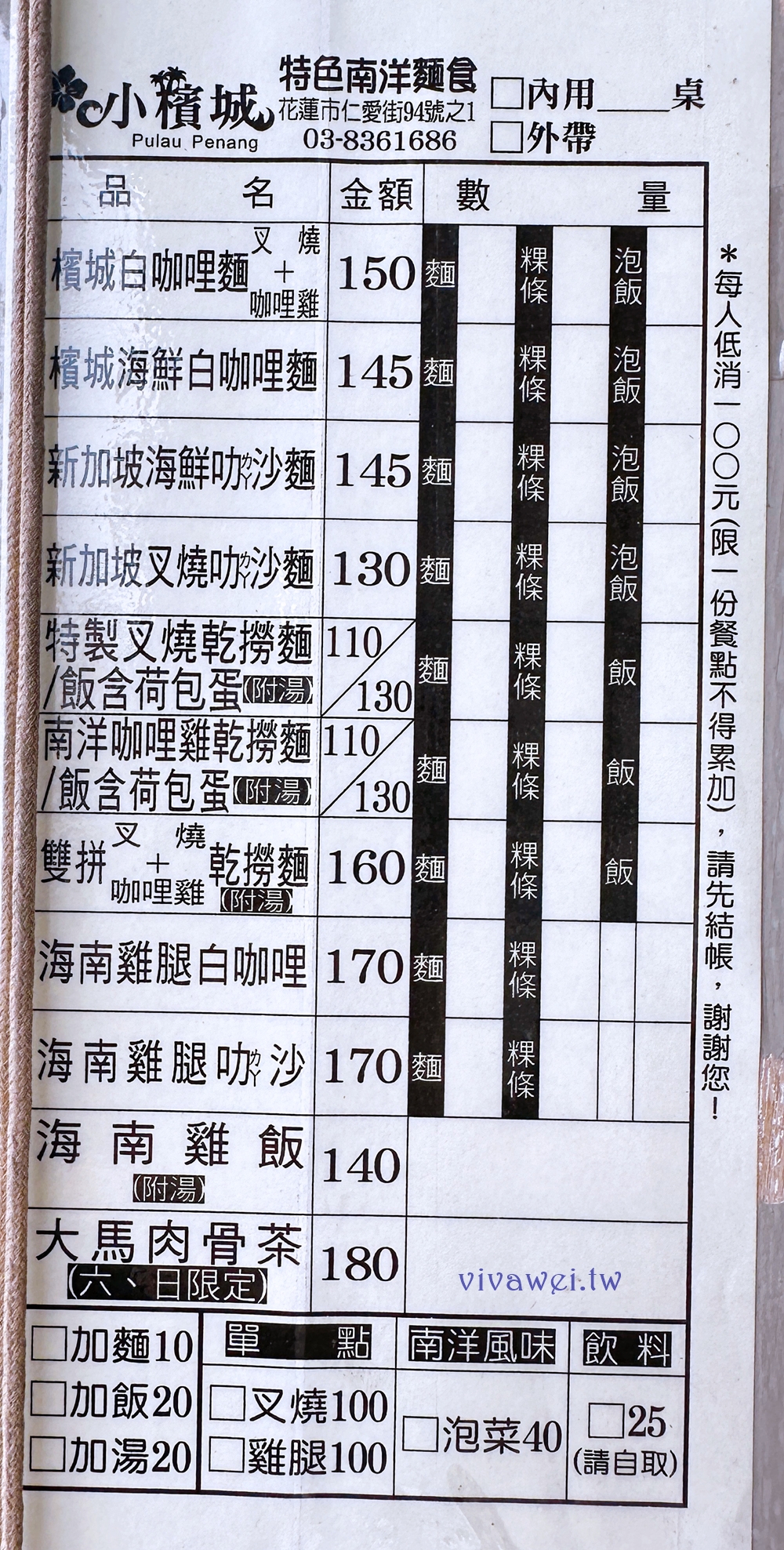 「小檳城特色南洋麵食-花蓮總店」店家資訊