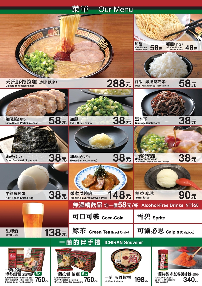 ▲此為「一蘭拉麵」2023年的最新菜單,供參考(實際販售品項與價格,以店家現場公告為主)