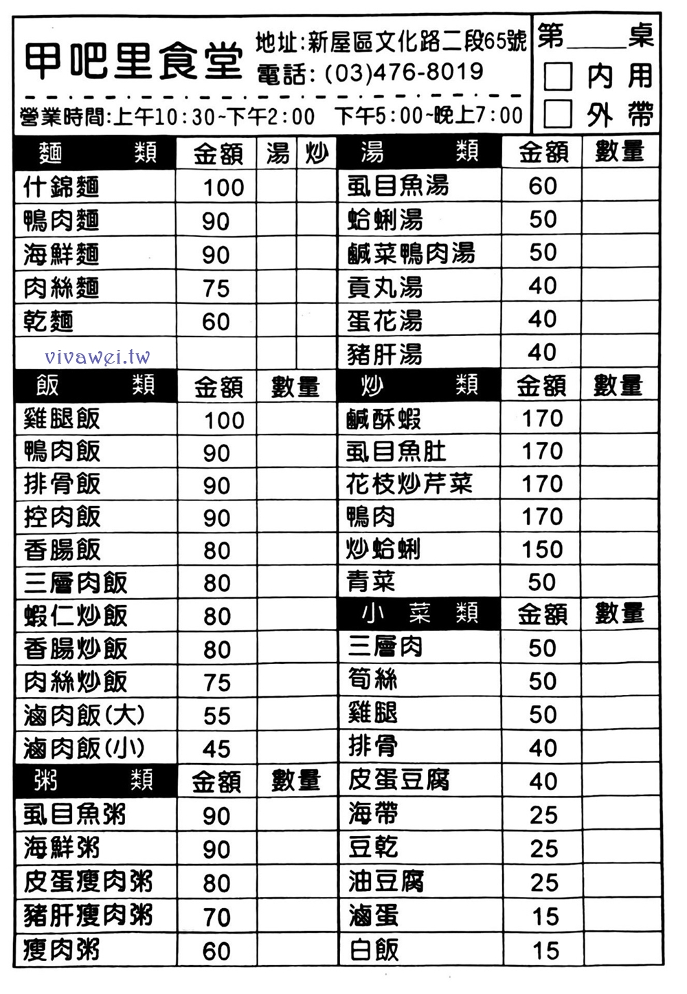 ▲這是「甲吧里食堂」的完整菜單,供參考(實際販售品項與價格,以店家現場公告為主)。