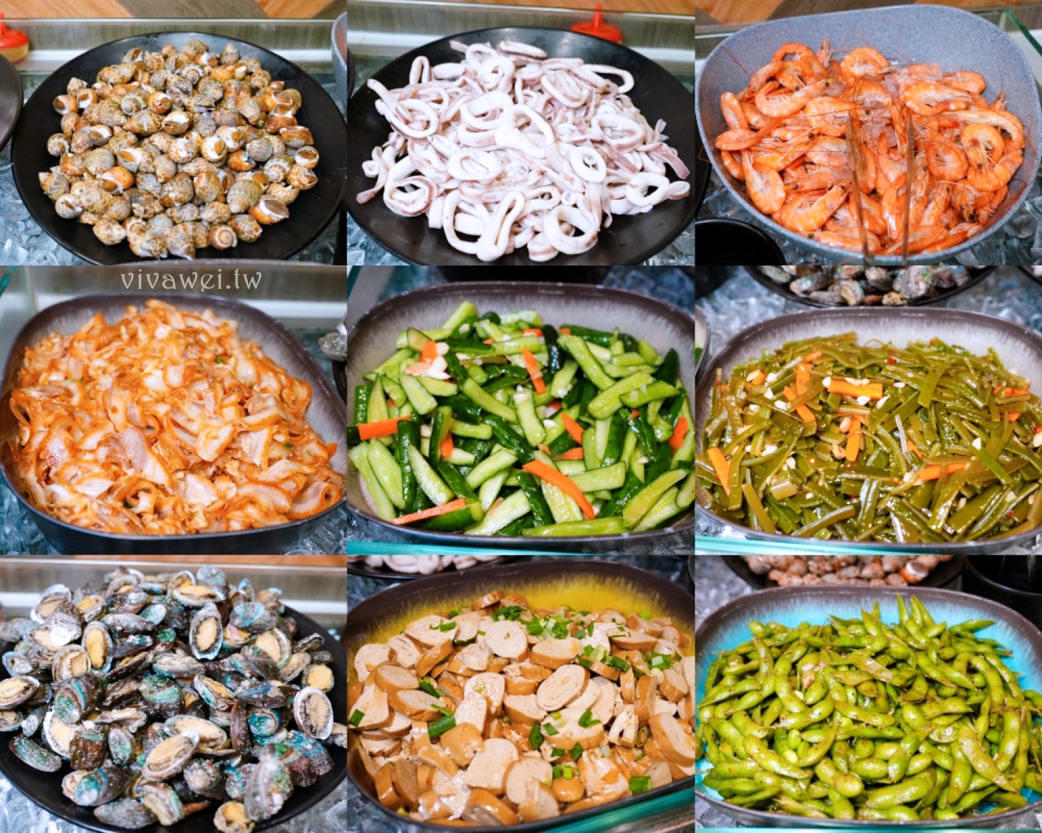 ▲鳳螺~小卷~白蝦~豬耳朵~涼拌小黃瓜~海帶~淡菜~涼拌素雞~毛豆~