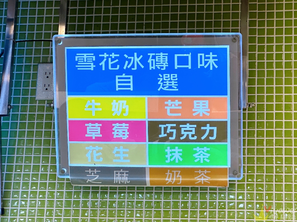 ▲雪花冰的冰磚有八種口味可以選擇:牛奶、芒果、草莓、巧克力、花生、抹茶、芝麻、奶茶!