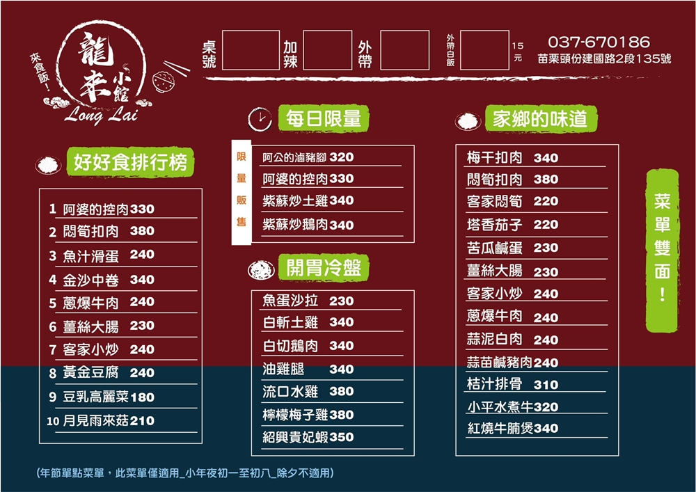 ▲這是「龍來小館」2023年7月最新上傳的完整菜單,供參考(實際販售品項與價格,以店家現場公告為主)