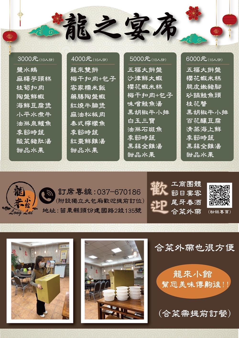 (新增2023年7月最新菜單)苗栗頭份美食「龍來小館」,位於頭份交流道不遠的熱門餐廳,現炒餐點品項豐富多元,選擇很多!店內附設獨立大包廂,適合大家庭和公司行號聚餐!也有提供外燴、客製化的會議餐盒、彌月油飯和真空調理包可以訂購,滿足各個族群的需求!文章內有店家地址、電話、營業時間、完整菜單價目表MENU供參考!