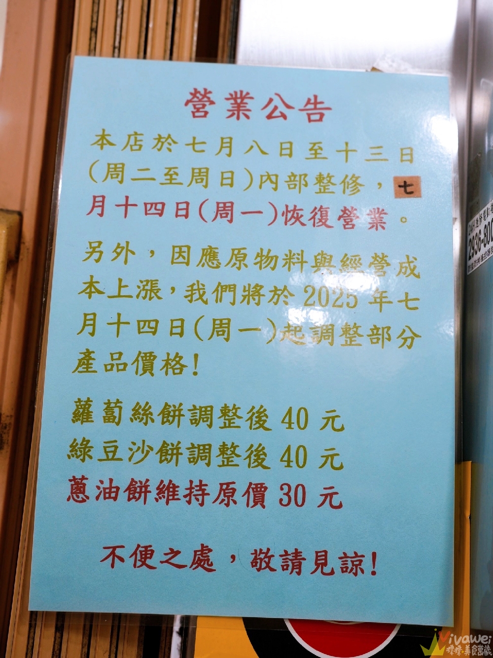 ▲店家將從2025年7月14日起調整價格,蘿蔔絲餅及豆沙餅為40元、蔥油餅則維持原價30元,加蛋則是+15元!