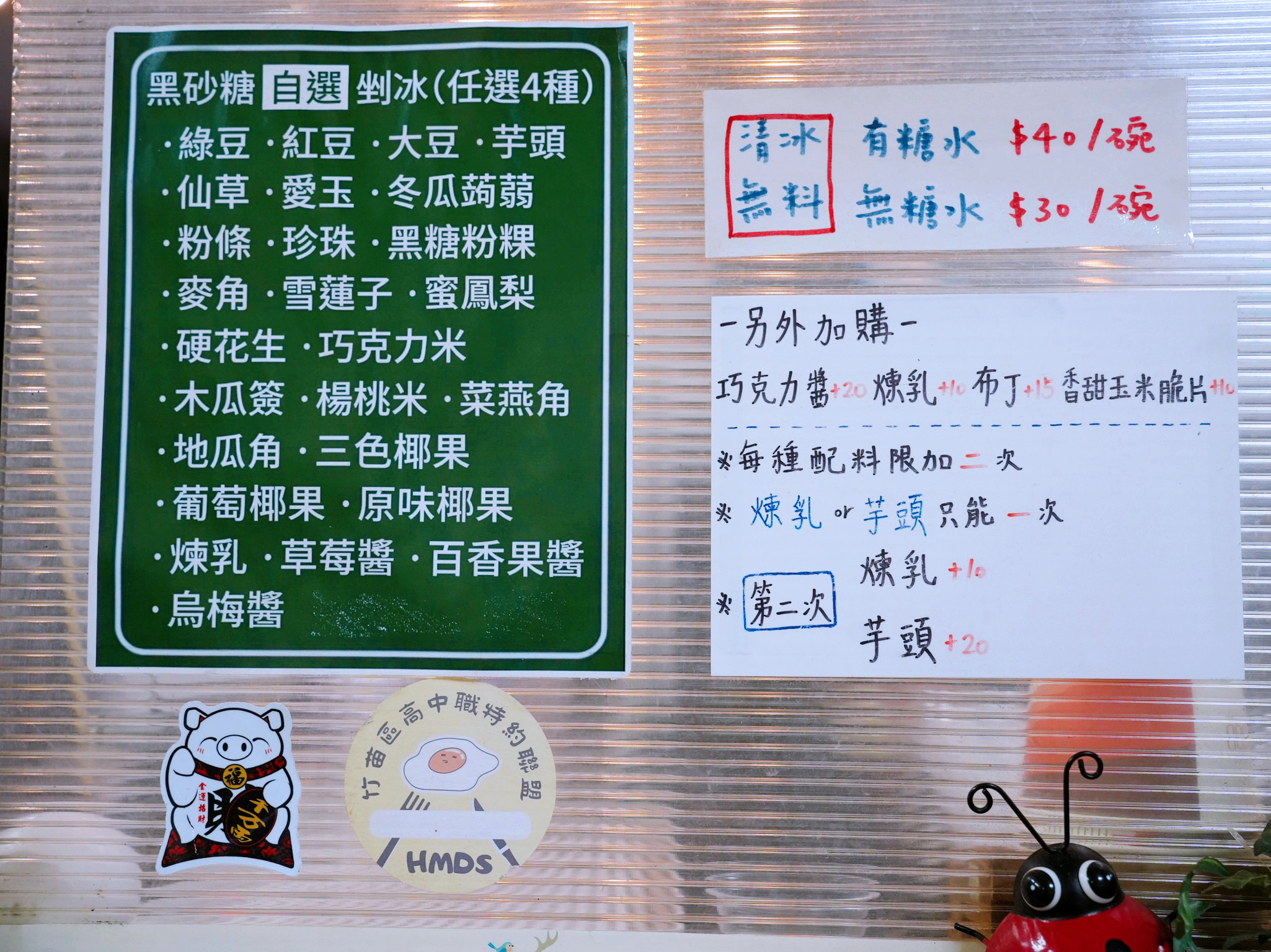 ▲黑糖剉冰可以任選4種配料,每種配料限加兩次,但第二次如果選煉乳、芋頭則需要額外加價!