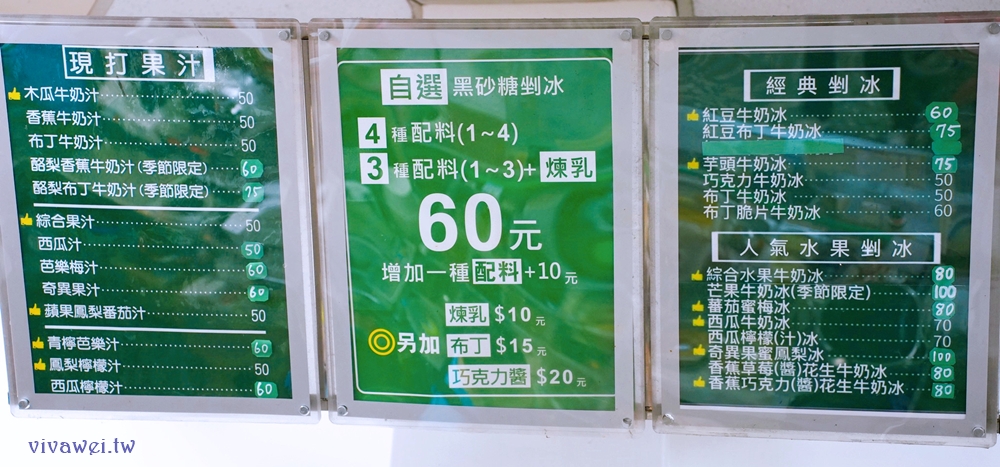 ▲冰品可以選擇店家搭配好的,或是很多客人喜歡的自選配料冰,任選1-4種料60元!
