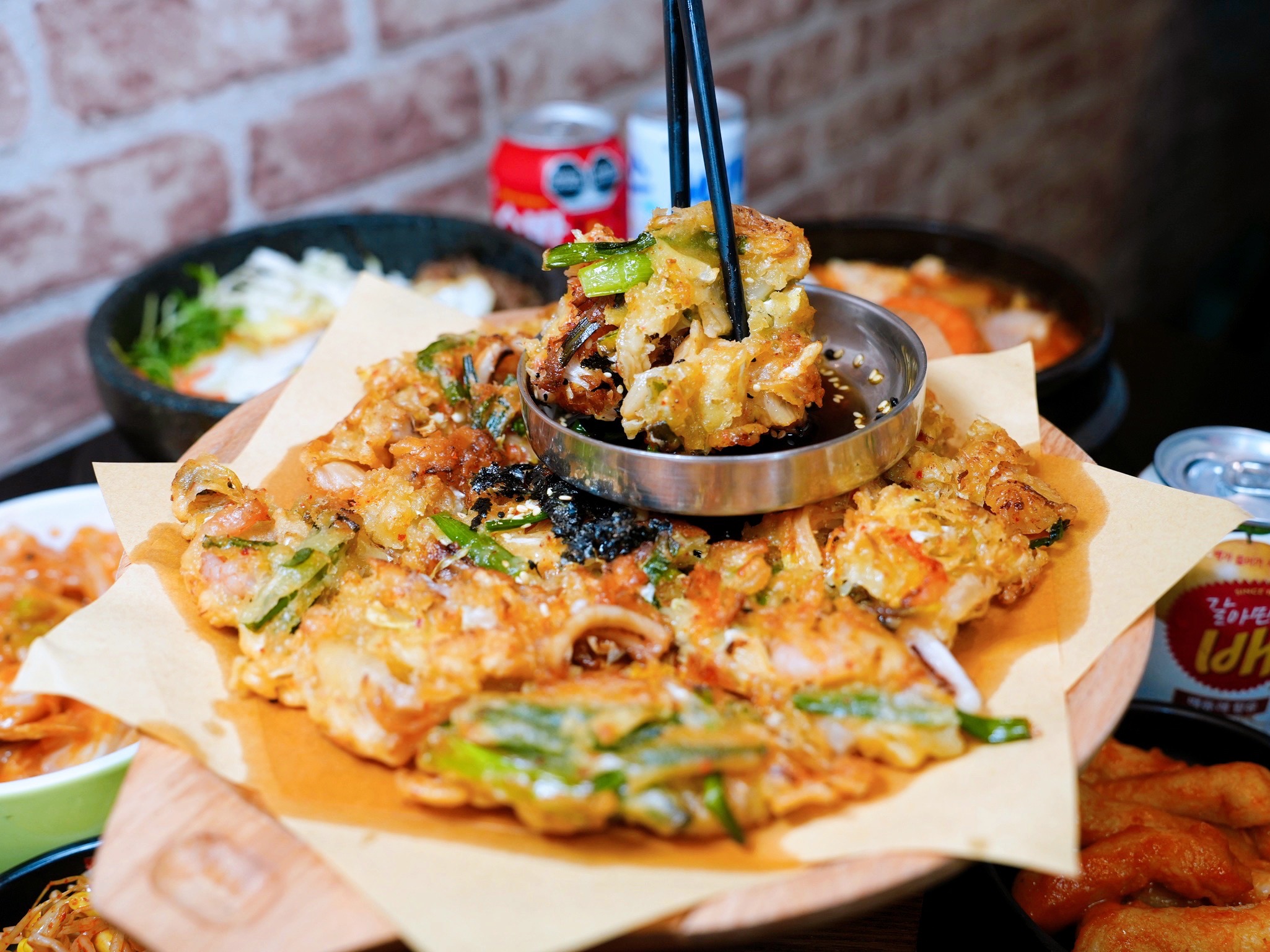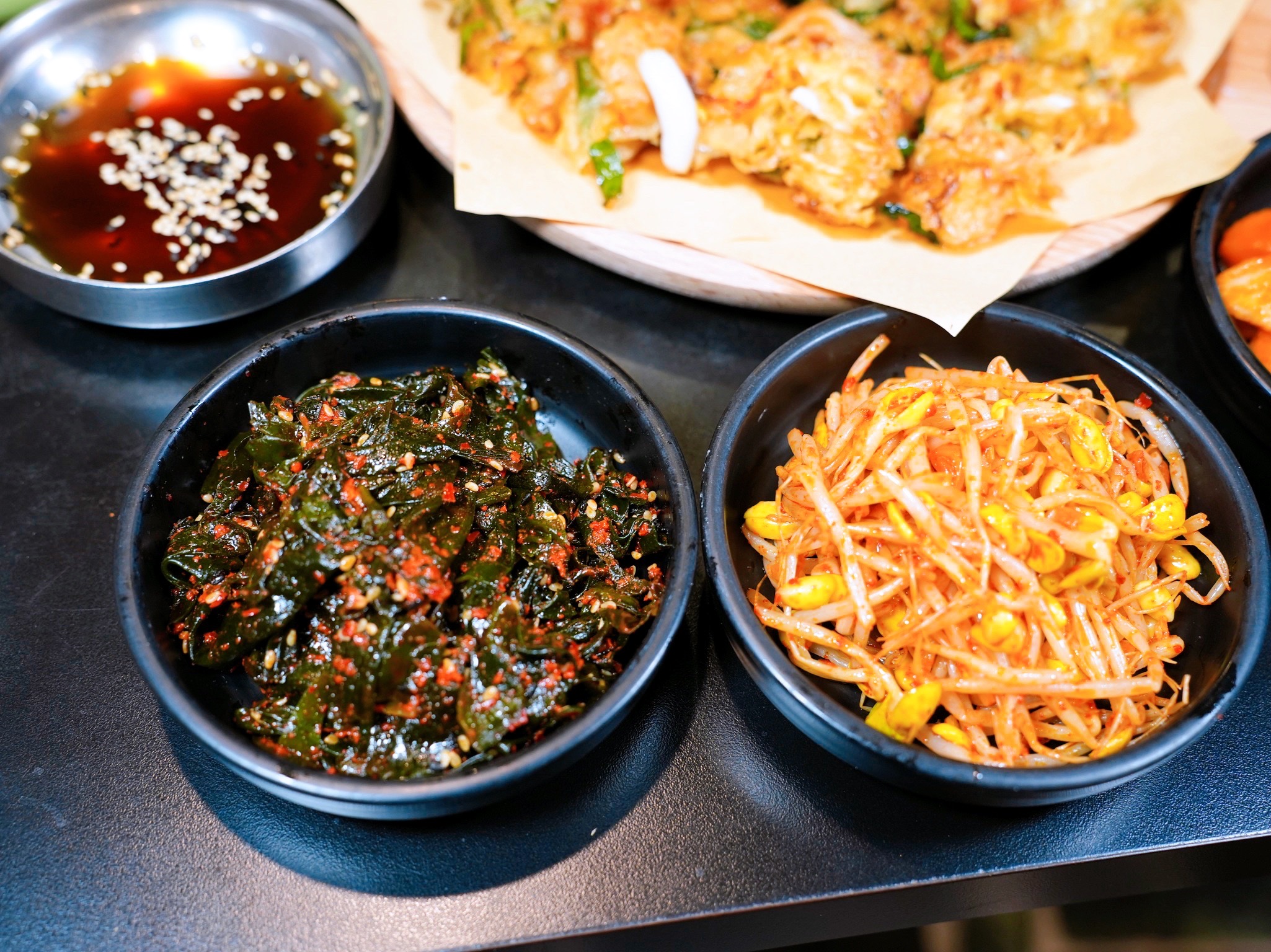 ▲這道泡菜海鮮煎餅是內用限定的,金黃酥脆的口感,上面有滿滿的配料,無論作為主餐還是分享小點都很受歡迎!推薦可以沾上旁邊附的韓式沾醬,可以平衡煎餅本身的鹹香與油度,讓整體味道更加耐吃😋