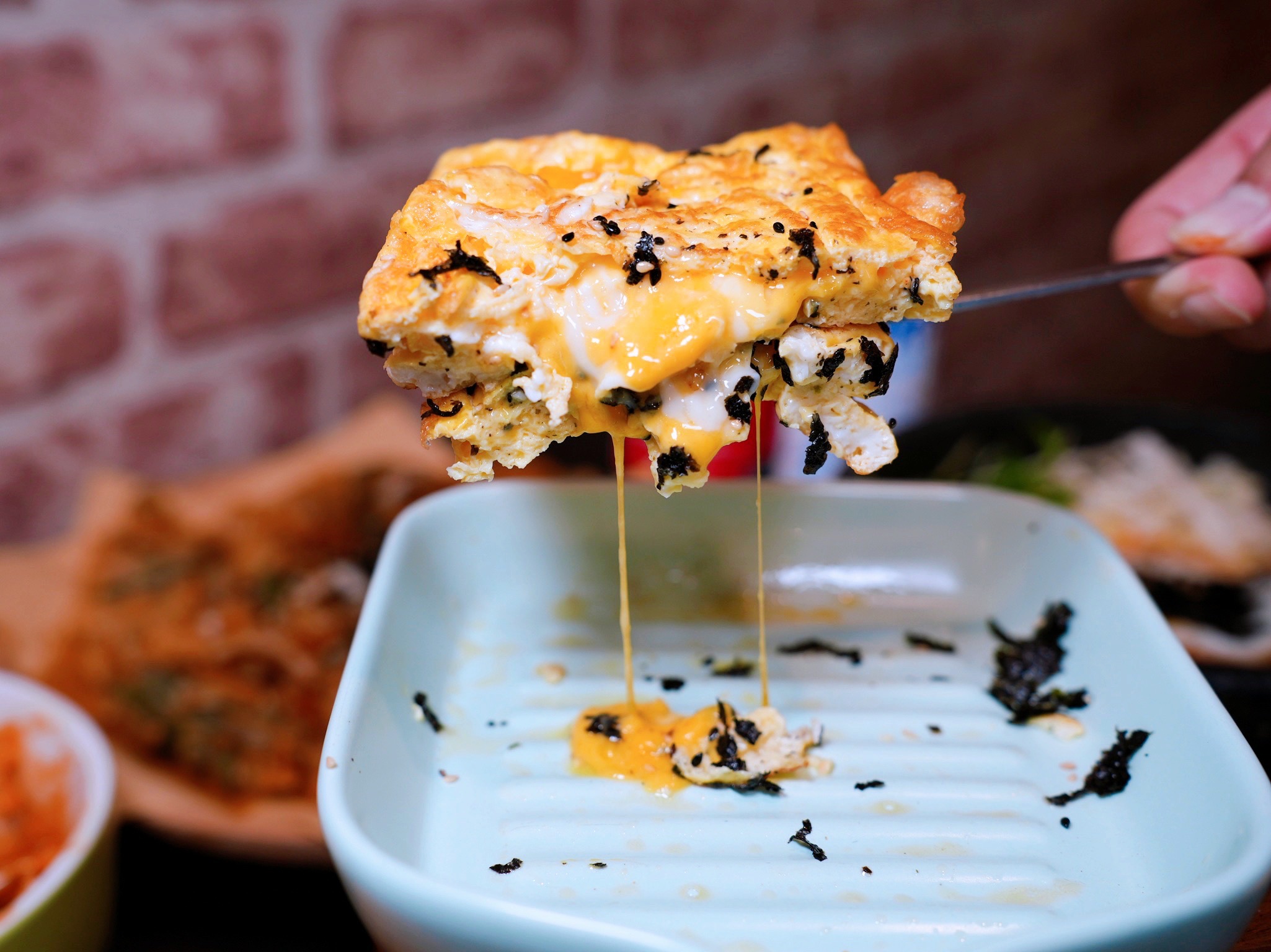 ▲起司歐姆蛋最讓人無法抗拒的肯定是那濃郁的起司啦!剛切開就像岩漿般緩緩流出,看上去就超療癒的!金黃澎鬆的蛋體,裡面有牽絲的起司,搭配海苔碎點綴,整體香氣撲鼻又不失層次😍