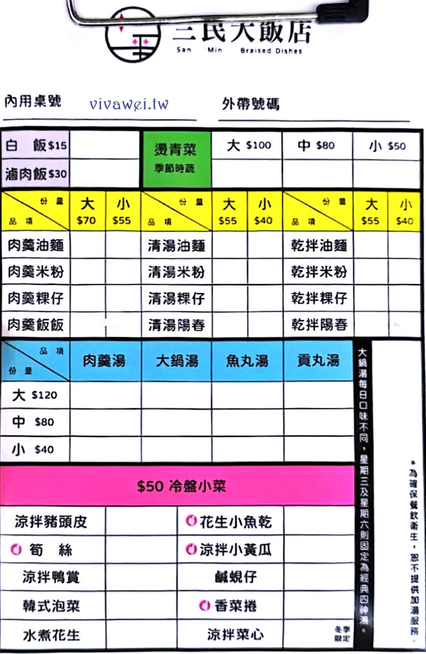 ▲這是「三民大飯店」的完整菜單,供參考(實際販售品項與價格,以店家現場公告為主)