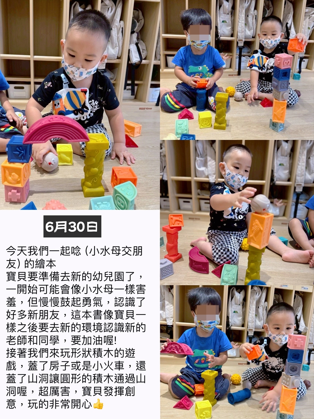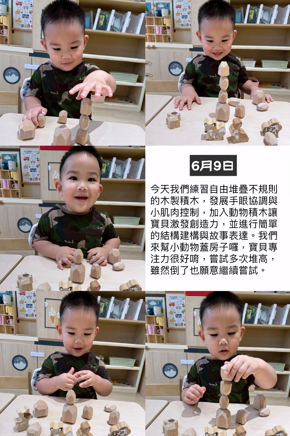 ▲今天在學校疊了不規則的積木!湯包很厲害~一下子就把積木疊的高高的~他在家也很喜歡疊積木呢😍