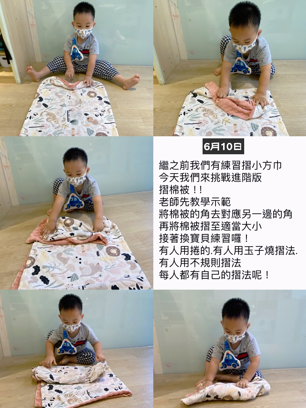 ▲今天在學校練習折被子!是說我們在家裡也不會特別折被子啦~所以還真是為難他了~平常沒看到正確的楷模😂