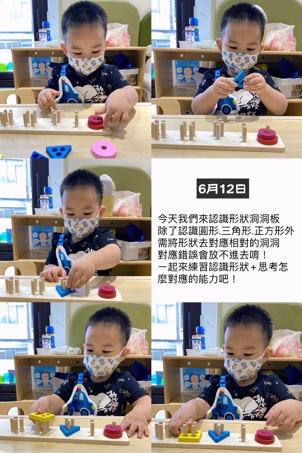 ▲今天則是拿了形狀洞洞板~把形狀放到相對應的洞洞裡面~