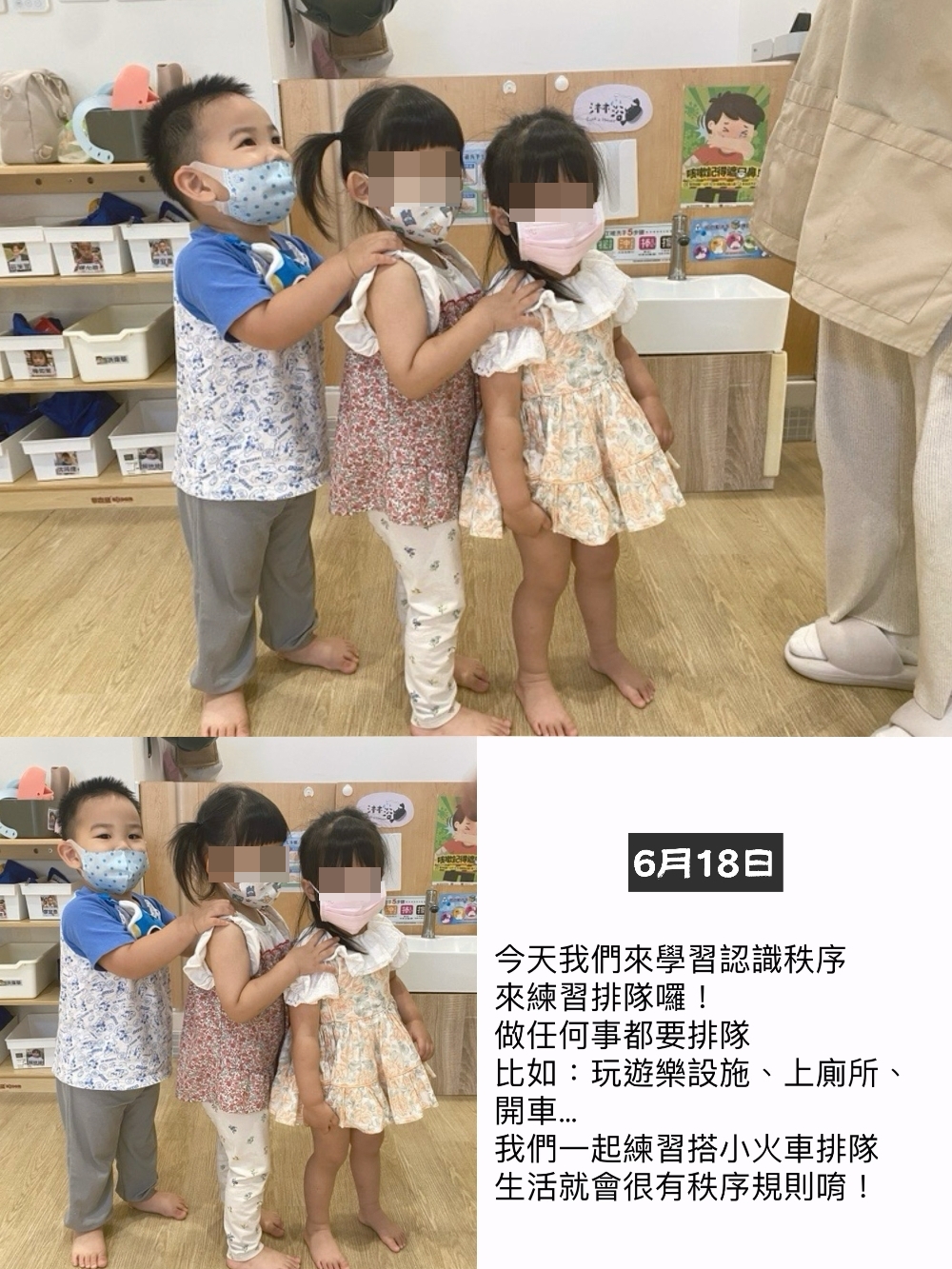 ▲今天在學校練習排隊~告訴小朋友們要守秩序~無論要玩遊樂設施或是上廁所~都要乖乖排隊遵守秩序唷!