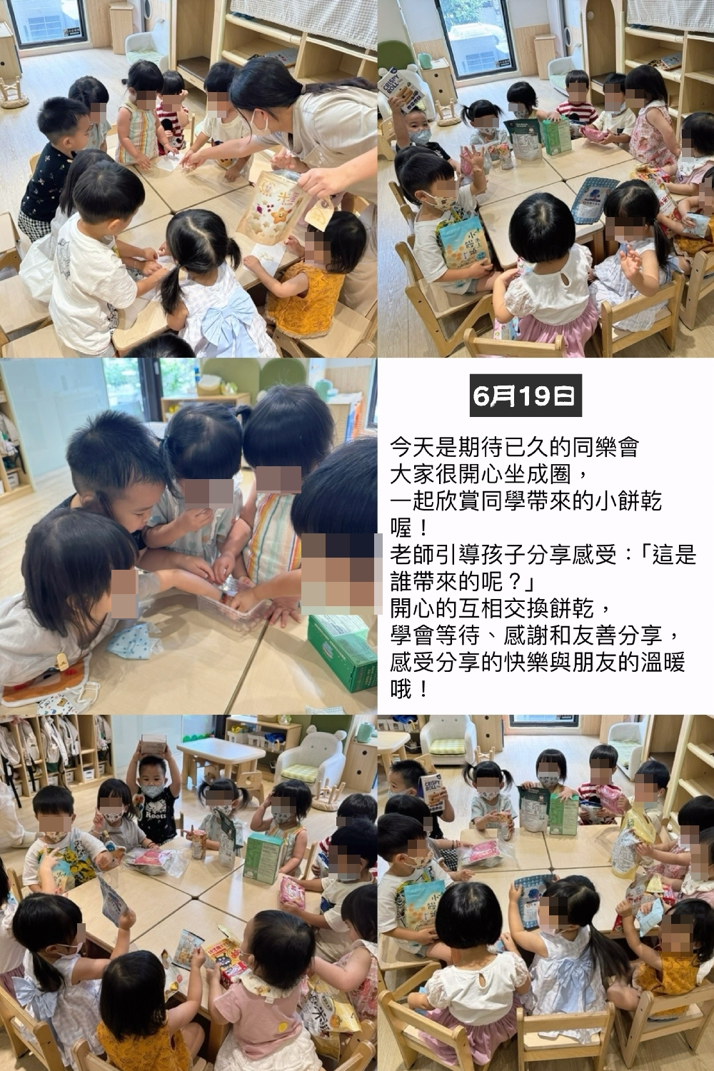 ▲因為班上有同學即將滿三歲要提前畢業了!所以老師請同學們準備了一樣餅乾~在班上開起了同學會~同學們互相交換吃餅乾~感覺超快樂的啦💯