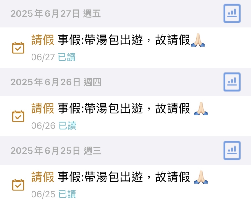 湯包2025年6月托嬰紀錄!這個月我和湯包爸爸安排了出國行程,感謝湯包的阿公阿嬤幫忙接送上下學,真的是超強後援無誤!回國後緊接著參加托嬰中心在阿沐舉辦的畢業典禮,然後再幫湯包請假三天帶他出遊,只能說這個六月過的非常充實!雖然參加了畢業典禮,但湯包還是會在托嬰中心待到八月底才換新學校唷!