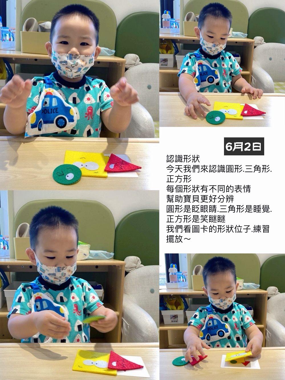 ▲今天讓湯包認識三角形、正方形、圓形!回到家以後他還會用手比出形狀給我看唷~想要跟我分享他認識的形狀🥰