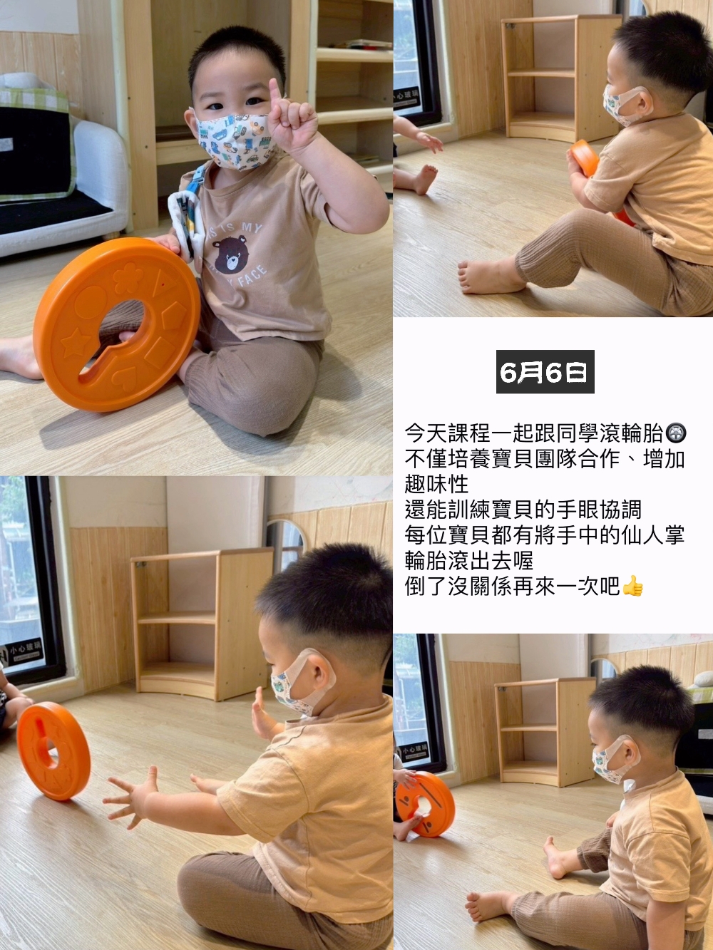 ▲今天和同學一起玩滾輪胎~有同學一起陪玩就是開心~遊戲都會變得更好玩唷!