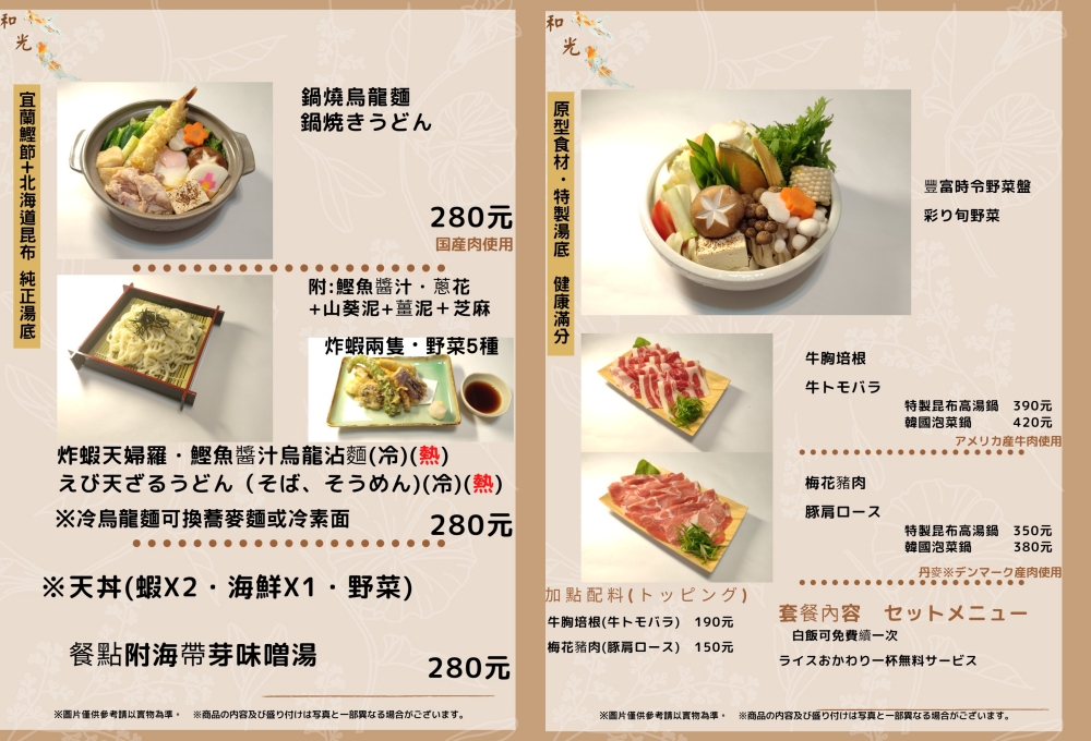 ▲以上是「和光日式家庭料理」2023年2月上傳的最新菜單,供參考(實際販售品項與價格,以店家現場公告為主)(線上菜單請點我)