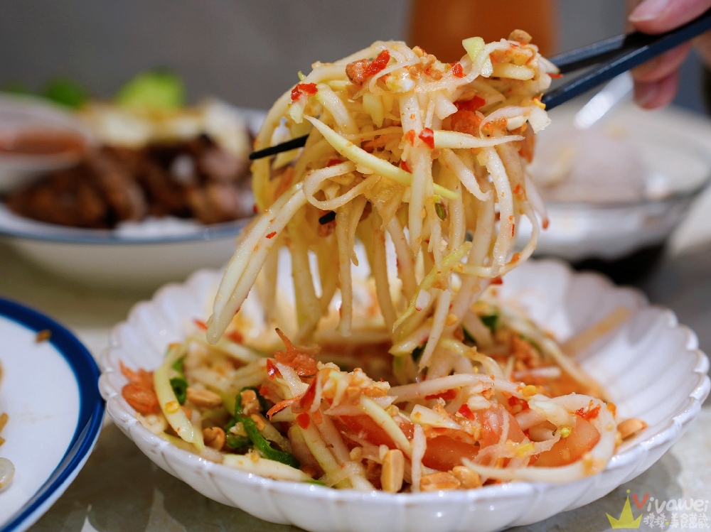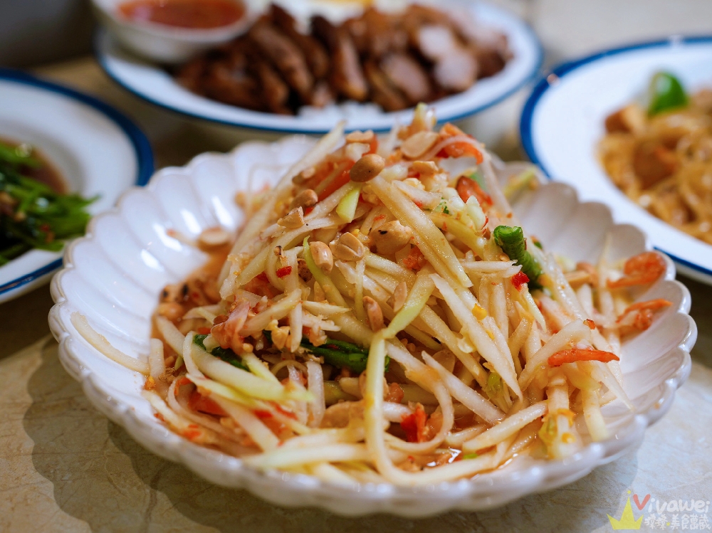 ▲涼拌青木瓜的份量還蠻多的,木瓜的口感清脆,還會搭配番茄和豆子,還有加了些硬花生增添口感!