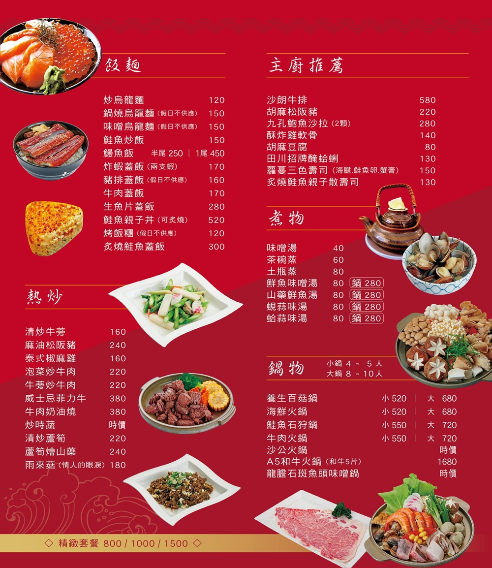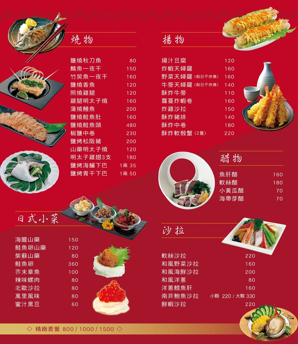 ▲以上是店家的單點菜單,也可以點店家搭配好的精緻套餐,套餐有三個價格:800元/1000元/1500元,精緻套餐的餐點以店家現場供應為主,就是無菜單料理的概念👌