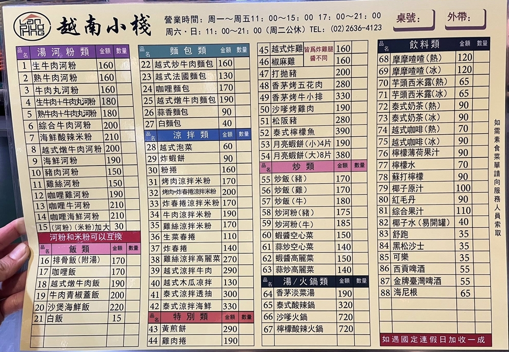▲這是「越南小棧」2025年上傳的最新菜單,供參考(實際販售品項與價格,以店家現場公告為主)