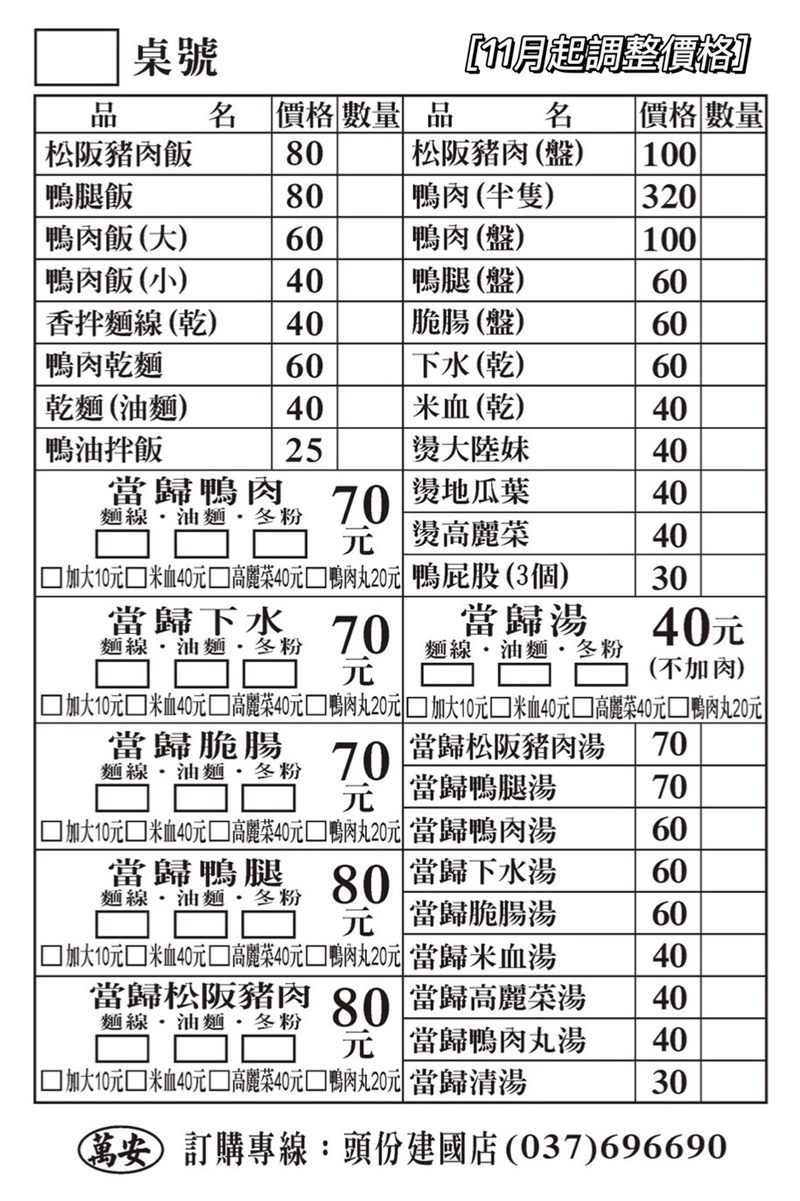 ▲這是「萬安當歸鴨」2022年10月上傳的最新菜單,供參考(實際販售品項與價格,以店家現場公告為主)。