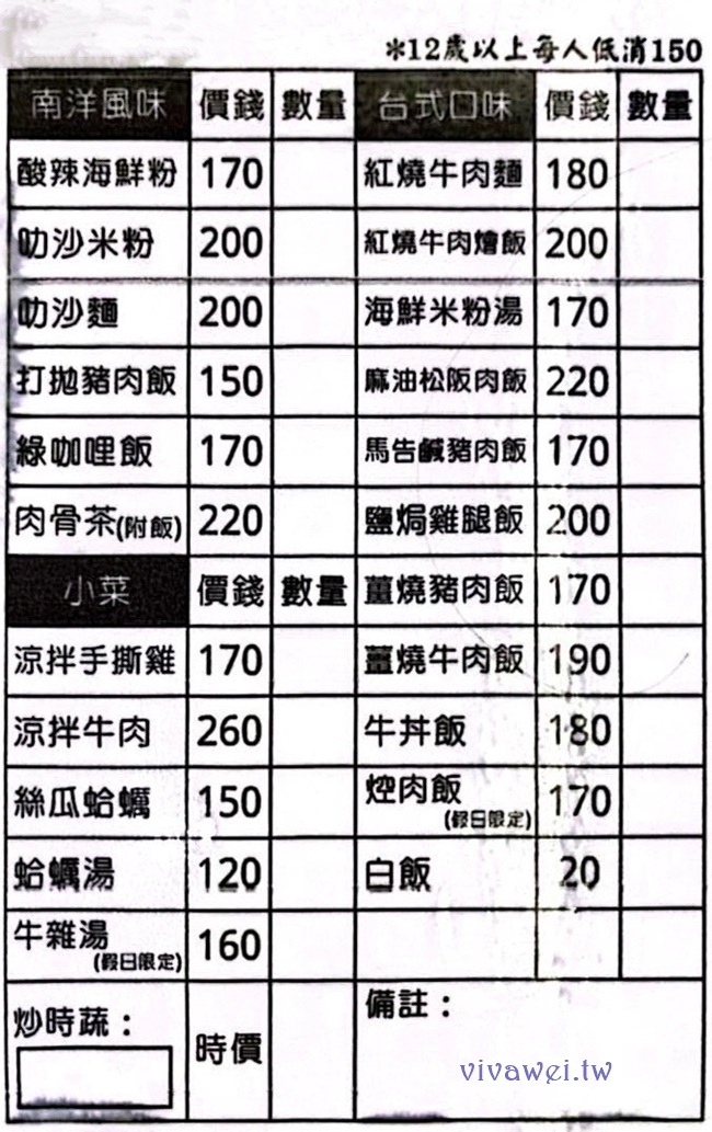 ▲我們這天點了酸辣海鮮粉、打拋豬肉飯、絲瓜蛤蜊!餐點都是現點現做的~需要花點時間等候~如果想要外帶的朋友建議可以先打電話預約~以免到現場久候唷!
